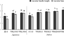 About 200 mg of leaf tissue was ground into a fine powder using liquid nitrogen to estimate antioxidants. Every powdered sample was precisely weighed before being thoroughly homogenized in 1.2 mL of 0.2 M potassium phosphate buffer (pH 7.8 with 0.1 mM Ethylene Diamine Tetra Acetic acid). The homogenized samples were centrifuged at 15,000 × g for 20 min at 4 °C, the supernatant was discarded, and the pellet was resuspended in 0.8 mL of potassium phosphate buffer. The suspension was centrifuged for another 15 min at 15,000 × g at 4 °C, and the supernatant was collected. The combined supernatants were kept on ice and were used to test the activities of various antioxidant enzymes. Catalase (CAT: EC 1.11.1.6) and ascorbate peroxidase (APX: EC 1.11.1.11) were measured using the Aebi47 method and a modified 48 method, respectively. Superoxide dismutase (SOD: EC 1.15.1.1), peroxidase (POD: EC 1.11.1.7) and glutathione reductase (GR: EC 1.6.4.2) were calculated as defined by Rao et al.49.
