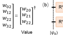In the field of quantum computing, a common method is to construct a computable function \(\tilde{m}:\left( {\vec{\theta },V} \right) \to L\), in which \(\vec{\theta }\) is a set of weight parameters that can be trained. What is different from classical neural networks is that these parameters have physical meanings such as angle information. Consistent with a classic neural network, these parameters can be optimized and trained by constructing a classic cost function.