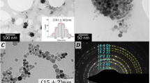 The final concentration of all products, expressed as a total iron concentration, was determined by the colorimetric phenanthroline assay. The phenanthroline protocol is based on the affinity of iron to form complexes with 1,10-phenanthroline having characteristic red color and UV–vis absorption at 510 nm. Briefly, the ferrofluid is digested in HCl (1:1 v/v) at 70 °C for 30 min. The sample is then diluted with water, and 200 μL of it are mixed with 50 μL HONH2·HCl (10 mg/ml) and 450μL CH3COONa (125 mg/ml). Finally, 300 μL of 1,10-phenanthroline monohydrate is added to acquire the characteristic red complex. The same procedure was followed to create a standard curve from a stock solution of FeCl2.4H2O in various known concentrations expressed as “mgFe/ml” for most characterization techniques, while for biological assays, it’s expressed in “μΜFe”. The samples were measured in UV–vis and their absorption at 510 nm.