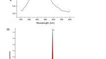 Phytochemical analysis of RCLE revealed the presence of flavonoids, tannins, phlobatannins, saponins, and anthraquinones (Table 1). Our findings are almost similar to that of previous reports where Chandrashekar et al. studied the phytoconstituents of R. cordifolia root26. These phytochemicals may act as reducing, capping, and stabilizing agents during the synthesis of AgNPs from RCLE. Phytochemicals are supposed to reduce Ag+ to Ag0 and synthesize RC@AgNPs. Some previous studies confirmed that tannins27, and saponins28 are responsible for reducing the metal ions to metallic-NPs. Anthraquinones are reported to be present in all the parts of R. cordifolia26. Purpurin (1,2,4-trihydroxyanthraquinone) and munjistin (1,3,-dihydroxy-9,10-dioxo-9,10-dihydroanthracene-2-carboxylic acid) are two predominant anthraquinones present in R. cordifolia, and supposed to be responsible for its pharmacological properties29,30,31.
