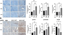 Tissue sections (5 µm) of paraffin-embedded samples were deparaffinized, washed with cold phosphate-buffered saline (PBS), and blocked with blocking solution (10% bovine fetal serum and 1% bovine serum albumin in PBST) for 60 min. Then the cells were incubated with mouse anti-αSMA monoclonal antibody for smooth muscle cell staining (Abcam, Tokyo, Japan; Cat# ab7817, RRID: AB_262054) and rabbit anti-CD31 monoclonal antibody for vascular endothelial cells (Abcam, Cat# ab182981, RRID: AB_2756834) as primary antibody (diluted at 1:500 in the blocking solution) at 4 C overnight, and incubated with the Alexa Fluor 488 or 594 conjugated goat anti-mouse IgG (Abcam, Cat# ab150113: RRID: AB_2576208; Abcam, Cat# ab150116: RRID: AB_2650601) and the Alexa Fluor 594 conjugated goat anti-rabbit IgG (Abcam, Cat# ab150084, RRID: AB_2734147) as secondary antibodies (diluted at 1:1000 in PBS) for 45 min a room temperature, respectively. The number of blood vessels, which were stained red larger than 15 pixels, was counted by Image J, and the number per field of view was calculated. The calculations were done on 5 randomly chosen areas at × 100, and the average numbers were used in each tissue. The percentages of smooth muscle cells were calculated as follows: the number of smooth muscle cells/the number of smooth and non-smooth muscle cells. Cells stained with or without αSMA were considered as smooth muscle cells or non-smooth muscle cells. The number per view field was calculated on 5 randomly chosen areas at × 200 magnification, and the average numbers were indicated in each tissue section.
