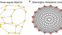 We compute circuits that minimize \({\textsc {CNOT}}\) gate counts for each register architecture in Fig. 1 using an optimization routine. We optimize single layers of the QAOA algorithm as additional layers have the same circuit structure apart from differences in the qubit locations due to \({\textsc {SWAP}}\) gates. These differences can be accounted for by mirroring the circuit implementation of \(\exp (-i\gamma _l C)\) in subsequent layers, so that qubits move back and forth between locations from layer to layer. For an n-qubit problem instance, we use register grids of sizes just larger than \(\sqrt{n} \times \sqrt{n}\), as we found that further increasing the grid size tended to result in larger optimized circuits. Our optimization procedure uses two nested loops. The inner loop is called in the circuit mapping algorithm SABRE47, which generates a set of random placements of the logical qubits onto the hardware register then optimizes each placement, ultimately returning the final optimized circuit with the smallest depth. For our circuits, we have found that SABRE sometimes yields sub-optimal placements, as it does not recognize the commutativity of the terms \(\exp (-i \gamma _l J_{i,j} Z_i Z_j)\) in Eq. (2), but instead tries to implement these in the order it is given. We therefore define an outer loop that randomly shuffles these commuting terms, to optimize over varying term orderings. This outer loop decreases the number of gates in our optimized circuits compared to a more basic implementation with SABRE only. For each problem graph, we take our final result from these nested loops as the circuit with the fewest \({\textsc {CNOT}}\) gates. The total number of \({\textsc {CNOT}}\) gates on hardware with limited connectivity with \(N_{\textsc {SWAP}}\) \({\textsc {SWAP}}\) gates is