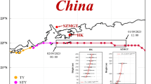 Figure 1 shows Mangkhut’s track from 14:00 UTC on 15 September to 18:00 UTC on 16 September 2018, when the maximum 10-min average surface wind of the storm was > 33 m s−1. The composite radar reflectivity in Fig. 1 was a snapshot at 07:00 UTC on 16 September. The radius of maximum winds (RMW) of Mangkhut was reported to be 105 km when the storm approached Hong Kong25. Data from the Shenzhen Meteorological Tower (referred to as SMT hereafter, Fig. 2) were analysed in this study. The location of the SMT is also shown in Fig. 1. The fetch over land at the SMT is > 40 km, although the distance from the SMT to the nearest coastline is ~ 9 km. Previous studies24 have shown that the transition of the TCBL across the coastal region mainly occurred within first 5 km from the coastline over land. The terrain type surrounding the SMT is tropical shrub.