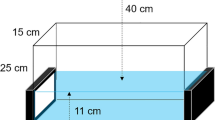 Maintenance conditions were identical for both species to avoid confounding effects on behaviour. The fish were kept separate per species in groups of 80–100 individuals in standard 200 L glass aquaria. Using 24 aquaria, we maintained a pool of 16–18 groups of zebrafish and 6–8 groups of medaka from which we selected the individuals to be used in the experiments. Each aquarium was provided with mechanical and biological water filters. The temperature of the facility was maintained at 28 ± 1 °C by means of an automatic air conditioning system, thereby ensuring constant water temperature in the aquaria. The pH of the water in the facility was set to 8.0 and regularly checked in the aquaria (8.04 ± 0.13, mean ± standard deviation)42. Light-emitting diodes (LED) lamps placed on the ceiling of the facility provided illumination and were controlled by electronic timers to provide a 14 h light/10 h dark photoperiod. Fish received live (Artemia salina nauplii) and dry food ad libitum twice per day. At the end of the behavioural testing, each subject was transferred to post-experiment aquaria to avoid re-using them. These post-experiment aquaria had the same conditions as described above.