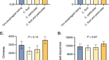 All data were sorted based on animal age into two sets, from 7 to 56 days of age and from 9 months of age to 21 days after calving, and analyzed separately. Data on fermentation parameters and bacterial abundance quantified via real-time PCR were analyzed using a repeated measures model using GraphPad Prism software version 9.1 (GraphPad Software, San Diego, CA, USA) with the fixed effects of dietary group, age, and diet × age interaction, and the random effect of animals within the groups. The Greenhouse–Geisser correction was used where sphericity was violated. If the P-value for the treatment effect was < 0.1, then Tukey’s method was used for multiple comparisons of the means. The effects of dietary group, age, and diet × age interaction on the bacterial taxon abundance determined via amplicon sequencing were assessed using the Poisson regression model in the lme4 package49 in R software. Dunn’s test was used for multiple comparisons, and P-values were adjusted using the Benjamini and Hochberg method50. Although the treatment effect was found to be significant for several bacterial genera, the post hoc test did not reveal any differences between the control and treatment groups at each sampling point (Supplementary Tables S3, S4). Therefore, the bacterial taxa determined via amplicon sequencing were further compared between the dietary groups at each sampling point using the negative binomial model implemented as the Wald test in the DESeq2 Bioconductor package in the R software51. A false discovery rate threshold of 0.15 was used to determine significance. Bray–Curtis dissimilarity matrices were calculated and visualized as PCoA using Phyloseq Bioconductor packages in R. permutational multivariate analysis of variance (PERMANOVA) tests were performed based on the Bray–Curtis dissimilarity matrices to assess the effect of dietary group, age, and diet × age interaction on microbial composition using the Vegan package version 2.5-752 in R software.
