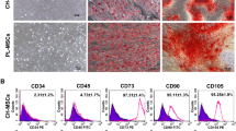 Isolated CH-MSCs presented fibroblast-like morphology and the ability to adhere to plastic (Supplementary Fig. 1A). Flow cytometric analysis of cell surface antigens showed a high expression of the fibroblast markers CD73 (97.31 ± 1.44%), CD90 (93.44 ± 1.65%) and CD105 (93.37 ± 1.92%), and a lack of hematopoietic markers including CD34 (1.46 ± 0.69%) and CD45 (2.53 ± 1.05%) (Supplementary Fig. 1B). In addition, the cells were able to differentiate into multiple cell lineages, including adipocytes (Supplementary Fig. 1C) and osteocytes (Supplementary Fig. 1D).