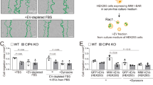 For EV purification, cells were cultured for at least 72 h in exosome-depleted FBS. Culture media underwent a differential centrifugation protocol of sequential steps at 500g for 10 min, 2000g for 10 min, and 10,000g for 30 min to remove cell debris for EV isolation. This resulting supernatant was ultra-centrifuged at 100,000g for 2 h at 4 °C (Beckman Coulter), and the pellet was suspended in PBS and ultra-centrifuged at 100,000g for another 2 h. EV content was determined by BCA protein assays (Thermo Scientific) after lysis with RIPA buffer (Sigma-Aldrich).