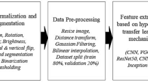 After converting DICOM images into jpg images, we scaled the images as per the standard size requirement of neural network models. For all the transformer variant algorithms, we resized each image to 168 by 168 pixels. Images for Inception v3 were resized to 299 by 299 pixels, while images for VGG16 and Resnet were reduced to 224 by 224 pixels.We then randomized all the images and took 1,300 examples of each diagnosis for the models’ consideration to avoid data imbalance problems, as we have 1,377 images available for the kidney stone category. The rotation operation for image augmentation was performed by rotating the images clockwise at an angle of 15 degrees. We evaluated all the models using a scheme where 80% of the images were taken to train the model and 20% to test the data. Within 80% of the training images, we took 20% to validate the model to avoid overfitting. The dataset is normalized using Z-normalization36 using following (1):