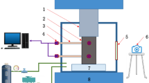 As shown in Fig. 6a, the AE energy was low (below 2 × 103 ms·mV) before instability, demonstrating slight fracture and slip. After occurrence of final instability, the energy instantly reached a peak equal to 3.598 × 103 ms·mV. During the entire loading process, the AE hits continued to rise and suddenly reached a peak once instability was reached. The circumferential strain of gauge #1 on the upper coal and gauge #7 on the bottom coal gradually increased with loading, while the axial strain of gauge #3 on the upper coal increased sharply. Due to macroscopic fracture (t = 364 s), the strain of the #3 gauge dropped and slightly increased with continuous loading, and it suddenly dropped to the minimum value again when final instability occurred. As shown in Fig. 6b, the AE energy of the #2 sample was extremely low before instability, in which the first two energy peaks were only approximately 0.5 × 103 ms·mV. Moreover, three slips produced three energy peaks (t = 160 s; t = 230 s; and t = 310 s) corresponding to the sudden increase in AE hits, and each slip caused a strain mutation of the coal blocks. The energy at final instability reached 6.069 × 103 ms·mV, which was significantly higher than that of sample #1, while the axial stress of the former was obviously lower than that of the latter. The overall level of AE energy was high with an extreme value of 15.128 × 103 ms·mV (Fig. 6c), which was generated by fracture of coal and rock parting during loading, whereas the stress peak (approximately 4.75 MPa) was much lower than that of sample #1. The #1 and #3 strain gauges failed due to macroscopic fracture of the upper coal. Each slip corresponded to an energy peak and a sudden increase in hits. As shown in Fig. 6d, the AE energy level was lowest, and the stress peak was almost equivalent to that of sample #3 when final instability was reached. The AE hits continued to increase during loading, and each slip corresponded to an energy peak. In summary, the AE effects were characterized by low energies and hits due to continuously stable slip without obvious fracturing of the coal and rock parting.