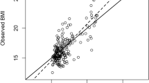 Catboost34 and random forest35 are ensemble learning methods for categorical and continuous features. We randomly divide the original data into training and testing set with equal sample sizes. Catboost and random forest models are estimated on the training data and BMI predictions are computed on the testing data. In catboost, we specify the number of iterations to be 200, learning rate as 0.05 and tree depth as 10. The mean absolute error of catboost is 1.36 on the training data, and 2.25 on the testing data. In random forest36, we specify the number of tree estimators to be 100, and the minimal number of observations required at each split as 7. The mean absolute error of random forest is 1.13 on the training data and 2.27 on the testing data.