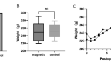 All rats were maintained in a single cage after surgery. After recovery from anesthesia, they were allowed only liquids and no standard chow. During the first three PODs, the rats were fed a liquid diet, and thereafter received normal chow. The rats’ general condition, eating habits, and magnet discharge time were observed daily.