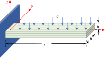 In Fig. 1, a flexible robotic arm is modeled as a uniform Euler–Bernoulli beam of length l. The motions of the gantry and trolley are generated by two control forces fz and fy, respectively. The positions of the trolley and gantry are denoted by y(t) and z(t), respectively. The beam’s vibrations in the i, j, and k axes are defined as the longitudinal vibration u(x, t), the transverse vibration w(x, t), and the lateral vibration v(x, t), respectively. In this study, the subscripts x and t, i.e., (·)x and (·)t, are the partial derivatives with respect to x and t, respectively, whereas \(\dot{y}\) and \(\dot{z}\) denotes the total derivative of y(t) and z(t) in t, respectively. The kinetic energy of the entire gantry, trolley, and beam system is given as follows: