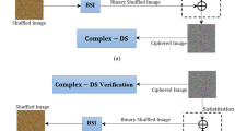 where \(\mathrm{N}\) is the number of elements in the two vectors \(x\) and \(y\). For typical images, the value of \(\rho \) is close to 1, while for encrypted images, the value of \(\rho \) should be closer to 0.