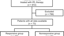 All data was analysed using IBM SPSS Statistics for Windows version 22.0. Descriptive Statistics were expressed as means and standard deviations. After testing the normality of the variables with the Kolmogorov–Smirnov test, data before and after IPL was compared using the Wilcoxon signed-rank test. Correlations were evaluated with Spearman’s Rho correlation. Statistical differences were set at p < 0.05.