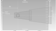 where \({\mu }_{T}\), \(S\), \(k\), \(\Omega\), \(\omega\), and \(\nu\) denote turbulent viscosity, magnitude of strain rate (\(\sqrt{2{S}_{ij}{S}_{ij}}\)), turbulence kinetic energy, magnitude of vorticity rate (\(\sqrt{2{\omega }_{ij}{\omega }_{ij}}\)), turbulence eddy frequency, and kinematic viscosity coefficient, respectively. Empirically, the SST Std. and R.M. models had little difference on weak separation such near the design flow rate17; the source term had a conditional effect on flow separation. It was also introduced that the effect is remarkable when the grid system is coarse, but it seemed that the effect can be notable even when the grid system is quite fine as in this study; in the validation step for this study, the SST Std. model obtained significantly different gradients near the stalling flow rates containing the positive gradients on the \(Q\)–\(P\) curve, whereas the SST R.M. model derived a relatively accurate prediction18. Although the SST R.M. model should not be understood as upward compatibility to the SST Std. model, finally, the SST R.M. model was applied in this study. Meanwhile, the turbulence intensity (\({T}_{u}\)) and the Reynolds number (Re) were approximately 4.84% on the inlet boundary and 247,763 for the ideal \({c}_{m}\), at each design flow rate for the case of none.