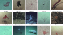 Large, publicly available labeled image datasets for marine concepts primarily represent planktonic communities. Imaging at these spatial scales (\(\sim\) 10–1000 s of microns) requires controlled lighting and imaging conditions that utilize darkfield, brightfield, or holographic illumination26, and these datasets include WHOI-Plankton27 (3M images representing 109 concepts collected by 1 imaging system) and EcoTaxa11 (150 M images collected by 10 imaging systems) among others. While the plankton imaging community has made significant progress in creating image data portals, these large datasets are primarily built for classification tasks (i.e., contains regions of interest only) and necessarily exclude larger animals and other marine animals found in midwater and benthic environments. CoralNet28, a portal and platform for working with coral imagery, is of a similar order of magnitude to these plankton datasets but is likewise restricted to a particular type of organism. There are no equivalent datasets for macroscopic ocean organisms; image sets of higher trophic-level animals29 are typically distributed in individual repositories that can be difficult to find for non-subject matter experts in the CV and AI communities. Thus, there is a clear need for a labeled image dataset that is representative of diverse biological communities across spatial scales in the ocean that can be readily accessed in a single, publicly available online repository (Fig. 1).