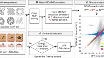 Interestingly, magnesium oxide (MgO) also grows on graphene layer31 while a metal catalyst is required to grow graphene on MgO substrate32. The flat graphene does not grow directly on MgO substrate, which agrees with the results of this study. 6-ring was predicted to vertically stand on the MgO substrate, however nanographene was expected to be placed flatly on the MgO substrate by the MD simulation. When MgO film is deposited on a graphene sheet, nanographene is stable on a MgO surface, so that MgO film is expected to grow on graphene sheet. For the same reason, Al\(_{2}\)O\(_{3}\) and silicon film might grow on the graphene layer, although the graphene did not experimentally grow on those substrates. In fact, Al\(_{2}\)O\(_{3}\) film grows on a graphene sheet33. Table 3 shows the summary of graphene growth on each substrate and vice versa.