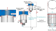 Equation (5) shows that the flow area of valve group could be controlled to change pressure drop by changing valve parameters in the design. Due to the limits of valve material, upper working pressure drop, working environment, etc., the maximum pressure fluctuation could not be too high. In order to meet actual pressure fluctuations, the maximum pressure drop \(\Delta p_{\max }\) corresponded to the minimum flow area \(A_{\min }\) and the maximum pressure drop \(\Delta p_{{m{\text{in}}}}\) corresponded to the minimum flow area \(A_{{{\text{max}}}}\); \(A_{\max }\) and \(A_{\min }\) could be calculated as follows.