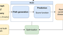 Previous works in PRA employed co-occurrence and node similarity based on ontology to calculate the triple score (node–relation–node)44. However, using the co-occurrence number in PRA neglected the semantic relatedness between nodes because it ignores relation/edge type. Similar to co-occurrence, the previous approach in the triple score calculation using ontology information focused solely on the hierarchical positioning and neglected semantic relations between nodes58. These conditions might not be the best option for inference-purpose or hypothesis generation from path-ranking results. Therefore, this paper proposed a framework in PRA that includes relations to calculate the triple score.