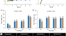 The chemical properties of each substrate explain the difference observed between them when CRF was not applied (0 kg m−3) since the seedlings did not grow in the CS and showed satisfactory growth in the SS (Table 1). Despite receiving base fertilization in its formulation, the CS presented low total nutrient contents, and the available values tend to be leached after the first weeks of daily irrigation. In contrast, the SS has considerable total nutrient contents and less available values, illustrating that nutrients in this substrate are gradually released to the plants, similar to a CRF application32. Therefore, when seedlings are produced with the CS, there is a need for top-dressing fertilization, base application of CRF rates, or similar input to supply the demanded nutrients for proper seedling growth6,13.