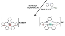 The instruments that were employed in this study were those that previously discussed elsewhere17. The size and morphology of the complexes were examined under a transmission electron microscope (TEM) (JEOL 1010 Japan) using a standard protocol after loading on carbon-coated copper grides. The antimicrobial activities were screened against Gram positive (Staphylococcus aureus, ATCC 25923) and Gram negative (Escherichia coli, ATCC 25922) bacteria beside the unicellular fungus (Candida albicans, ATCC 10231) by applying the standardized disc—agar diffusion method18,19. Gaussian 09 W program was used to study the 3D-optimized molecular structures of the Schiff base ligand and its complexes by density functional theory (DFT) with Becke’s three-parameter exchange, and Lee–Yang–Parr correlation functional (B3LYP) with a combination of 6-311G++ (2d, p) basis set for the ligand, and LanL2DZ basis set for the complexes20,21. To evaluate the binding mode of the synthesized compounds on DNA, which is related to their activity, a molecular docking procedure was performed. Utilizing the Molecular Operating Environment (MOE, 2015.10) software22, all molecular modeling studies were carried out. All minimizations were carried out with MOE until an RMSD gradient of 0.05 kcal mol−1 Å−1 with MMFF94x force field and the partial charges were automatically determined. Gel electrophoresis experiment is used to perform DNA cleavage. Gel electrophoresis is a common technique for examining the interactions of compounds with nucleic acids: separation of molecules depending on their relative rate of movement through a gel when subjected to an electric field. A wide range of frequency, from 100 to 8 × 106 Hz, and temperature, from 308 to 418 K, were used to study the AC conductivity (σac) of Schiff base ligand and its complexes.