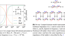 LEEC are typically used to modeling linear responses of magnetic rings in frequency domain, but when lumped elements are extended to nonlinear characteristics the LEEC can be efficiently used to modelling of magnetic rings in nonlinear conditions as well10,17. The great advantage of such approach is that it is capable to modeling of magnetic rings in both frequency and current domains, and in a form that can be directly implemented in circuit simulators such as EMTP or SPICE16. The approach was used in10, where the LEEC model was proposed that reproduced the impedance characteristics \(Z(f,i)\) of magnetic ring in both frequency and current domains.