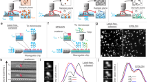 The edge response at the large square marker used to identify the patterned areas in the fluorescence microscope (Fig. 5c) for both WF and SIM, enables extraction of the apparent MTF in both cases and, for SIM, also for the various combinations of w and \(\beta\) (Fig. 5d). For SIM, the MTF is clearly extending to higher spatial frequencies. Also the artefacts for non-optimal values of w and \(\beta\) are apparent in the MTF curves. We note that all SIM reconstructions display a similar overshoot in the low frequency regime, which may be due to a higher density of fluorescent molecules close to the edge. This could for instance occur as a result of proximity exposure. On writing a dense structure like the marker, proximity will effectively increase the dose deposited at each pixel. In conducting a dose series on an array of squares, we observed an optimal dose for functionalization beyond which the affinity for antibody labelling decreases and is ultimately inhibited (Supplemental Fig. S1). Thus, as our procedure was optimized for writing ~ 80 nm wide lines and small structures, proximity may cause the edge of a dense structure to exhibit higher binding affinity than the centre. The brighter edge of the Sky and Water I pattern could also be a result of this (Fig. 3c,f). This means that a further extension to more complex shapes or to even smaller feature size should include a calibration or estimation of proximity exposure in order to correct on a pixel-by pixel basis based on the aimed-for pattern dimensions similar to procedures in electron beam lithography.