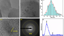The synthesis of CQDs-N(CH2PO3H2)2 encapsulated in SBA-15 as a composite material was also checked by XRD patterns of the corresponding starting material components (Figs. 5 and 6). For this purpose, XRD patterns exhibited distinguished three bands inclusive of a sharp band (100) and small bands indexed (110) and (200), which are in a close agreement with the previously reported data18. As shown in Fig. 5, the broad peak of CQDs-N(CH2PO3H2)2/SBA-15 corresponds to diffraction lines 002 in carbon quantum dots (CQDs). Therefore, the broad band in 2Ɵ = 15–35° indicated a successful immobilization of CQDs-N(CH2PO3H2)2 into SBA-15. The textural properties of SBA-15 and CQDs-N(CH2PO3H2)2/SBA-15 were also studied by N2 adsorption–desorption isotherms (Fig. 7a,b). A hysteresis loop is observed indicating the presence of mesoporous in the sample. The calculated surface areas for SBA-15 and catalyst based on BET equation and total pore volumes are 596.55 m2 g−1, 192.07 m2 g−1 and 0.8564 cm3 g−1, 0.3709 cm3 g−1, respectively. The pore size distribution of CQDs-N(CH2PO3H2)2/SBA15 based on BJH method is shown in Fig. 7. This plot clearly shows pores diameter of SBA-15 was 4.03 nm and reached 3.53 in CQDs-N(CH2PO3H2)2/SBA-15.