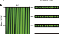 As PEG derivatives are generally considered biocompatible, bioinert, and biodegradable7, we tested various PEG-DAs of low molecular weight, such as PEG-DA MW 700, PEG-DA MW 575 and PEG-DA MW 258 as precursors for the production of microcapsules after photopolymerization by UV illumination. For PEG-DA with MW 575 or higher, their water miscibility prevented us to readily form double-emulsions. Leonavicene et al. recently showed that it is possible to obtain a two-phase system by combining PEG-DA MW 575 and high molecular weight PEG-DA MW 8000 in the inner phase and form core-shell capsules using PEG-DA as a capsule material8. However, we considered an alternative approach in using PEG-DA MW 258 as a potential polymer precursor due to its water immiscibility, as was also reported by Nam et al.5. This property of PEG-DA MW 258 allowed us to use it as the middle phase in double-emulsions and was compatible with droplet generation in a PDMS device (Fig. 1A). To form the double-emulsions, we used an aqueous continuous phase supplemented with 10% PVA. The PEG-DA 258 middle phase is supplemented with a photoinitiator (HMPP) and surfactant (Span80), with the optional addition of a mild organic solvent. We produced monodisperse double-emulsions in a jetting regime with flow rates of 2500 \(\upmu \)L/h for the aqueous continuous phase, 200 \(\upmu \)L/h for the PEG-DA MW 258 middle phase, and 250 \(\upmu \)L/h for the aqueous inner phase (Fig. 1B). Interestingly, the double-emulsions could be generated without requiring any surface treatment of the device owing to the non-planar geometry of the PDMS device which prevents wetting of the collection channel by the hydrophobic middle-phase.