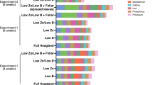Seidel, E. P., Egewarth, W. A., Piano, J. T. & Egewarth, J. Effect of foliar application rates of calcium and boron on yield and yield attributes of soybean (Glycine max). Afr. J. Agric. Res. 10(4), 170–173. https://doi.org/10.5897/AJAR2014.9046 (2015).