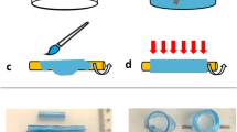 The result of the process was a 40 cm long, cylindrical, latex casing around an aluminium mandrel, which was carefully removed once the latex was dry. After the ends were removed, the tube was cut into three identical latex tubes, each 12 cm long. The compliance, C, of the latex tubes was measured experimentally. Compliance is defined as per Eq. (1)13,