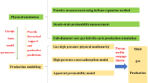 The pressure-controlled production simulation based on the comprehensive pressure-controlled mechanism is scientific and theoretical to the optimization of shale gas reservoir production strategies. Currently, the four common industrialized and recognized pressure-controlled mechanisms include (1) artificial fracture conductivity loss17,18,19; (2) micro-fracture stress sensitivity16,20,21; (3) matrix stress sensitivity22,23; (4) proppant reflux theory24,25. So far, the pressure control mechanism analysis is mainly conducted by numerical simulation, which lacks the support and verification of experimental research and theoretical models. In addition, the current pressure-control mechanisms mostly focus on the stress-sensitivity of gas-saturated rock, and the impact of water–rock interaction on reservoir damage has not been considered. Literature studies26,27 explained that much fracturing fluids in long-term contact with the formation causes the particles to fall off the reservoir and the clay-swelling, leading to the enhancement in the reservoir stress sensitivity. Thus, the water–rock interactions cannot be ignored in the research on pressure control mechanisms of shale gas wells.