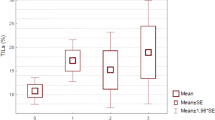 Low, intermediate and high sTILs were observed in 62.9%, 18% and 19.1%, with a median score of 20 (range 0–96) (Table 2). The inter-rater reliability defined by intra-class correlation coefficient was 0.87 (95% C.I. 0.73–0.94) in 100 samples. We observed no significant difference between raters from the Bland–Altman analysis (p = 0.5).