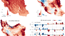 With a repeat cycle of 16 days and moderately high spatial resolution (30 m), the historical record of Landsat data extends to the 1980s. Several vegetation indexes have been developed to quantify vegetation health, including the NDVI, Enhanced Vegetation Index (EVI63), and Soil Adjusted Vegetation Index (SAVI64) etc. Vegetation changes are slow (spanning over several days) and Landsat’s 16-day revisit frequency can capture the natural vegetative cycle. However, frequent cloud cover poses a challenge to the use of visible and near-infrared band-based indexes such as NDVI. That is particularly true for data collected before 2010 when relatively fewer satellite overpasses are available for analysis. In this study, we used Landsat 7 data from Google Earth Engine image collection after accounting for quality flags, clouds, and cloud shadows65. Moreover, the rainfall data for contextual assessment was available from Climate Hazards Infrared Precipitation with Station Data (CHIRPS66). CHIRPS is a satellite-driven rainfall product that has been corrected using ground observations from across the globe. A 5 day (pentad) CHIRPS product (1982–2021) at 5 km spatial resolution was used in this study. Gridded CHRIPS precipitation data has been extensively evaluated and applied across the globe66,67,68,69.