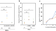 OP9 has been widely known as a feeder cell to promote hematoendothelial differentiation, but is also known to share some characteristic features with MSCs, including the immuno-phenotype, the ability of differentiation, and immunomodulative effects57. The underlying mechanisms of OP9 pre-conditioning in UCB cells could be attributed through “monocyte education” rather than differentiation of stem and progenitor cells, considering that we co-cultured UCB with OP9 for only 1 d while usually it takes days to obtain myelomonocytic cells through differentiation from embryonic stem cells using OP958.