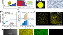 X-ray diffraction (XRD, Bruker D8-Advance) analysis was performed to evaluate the crystallinity of synthesized materials. Optical characterization of PiGs was performed by fluorescence spectroscopy (Fluorescence, Scinco, FS-2, Korea). Electroluminescence characteristic was performed by integrating spheres (PSI Co., Ltd/Korea) under blue LED. Particle morphology and chemical composition were measured by field emission scanning electron microscopy (FE-SEM, JEOL, JSM-7600F with Energy Dispersive Spectroscopy (EDS)). For the surface morphology and component analysis of PiGs, the specimens were processed with an ion-beam cross-section polisher.