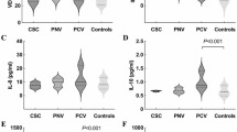In contrast, there have been few reports on the associations of PNV. Earlier studies showed that PNV was associated with elevated levels of VEGF6, CCL2 (C–C motif chemokine 2)6,25, IL-8, angiopoietin-2, PGF (placental growth factor), CXCL12 (C-X-C Motif Chemokine Ligand 12), and CXCL13 (C-X-C Motif Chemokine Ligand 13)25. Thus, eyes with PNV have an overlapping profile of cytokine elevations with nAMD, however it is still unclear whether PNV has a specific cytokine profile.