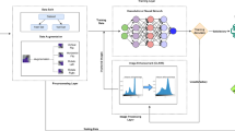 In machine learning, an ensemble model is a voting scheme that combines the predictions from multiple other models. The ensemble model’s work is similar to the collective judgment by a medical expert panel in diagnosing a complicated case. The advantage of an ensemble model is that the final results are more stable for complex samples and potentially more accurate in quantitative evaluation. On the other hand, however, it may cost more computational time in inference. In this work, we integrate the ensemble scheme into the inference stage and evaluate its results. Ensemble linearly combines the bounding boxes of leukocytes with the corresponding confidences as the weights43. Given a list of \(N\) overlapping predicted bounding boxes \(\left\{ {\overset{\lower0.5em\hbox{$\smash{\scriptscriptstyle\rightharpoonup}$}} {L} ^{i} = \left[ {x_{1}^{i} ,{\text{~}}y_{1}^{i} ,x_{2}^{i} ,y_{2}^{i} } \right]} \right\}\) for leukocytes and the corresponding confidence values \(\{{C}^{i}\}\) from \(T\) models. \(T\) is the number of models which make most predictions on the leukocyte to be the same type. The number \(T\) is less than or equal to \(N\), because of possible false negative detection; and greater than \(N/2\) because these might be some false positive detection. The averaged bounding box \(\overset{\lower0.5em\hbox{$\smash{\scriptscriptstyle\rightharpoonup}$}} {L} ^{\prime } = \left[ {x_{1}^{\prime } ,{\text{~}}y_{1}^{\prime } ,x_{2}^{\prime } ,y_{2}^{\prime } } \right]\) and the updated confidence values \({C}^{\mathrm{^{\prime}}}\) are given as: