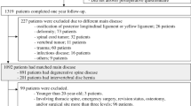 Patient-reported outcomes were assessed before and 1 year after surgery. Pain was assessed using the Numeric Pain Rating Scale (NPRS) from 0 to 10 for the lower back, buttock, leg, and plantar area. QoL was assessed using the EuroQol 5 Dimension (EQ-5D) and the Oswestry Disability Index (ODI). Postoperative patient satisfaction was also evaluated at 1 year after surgery using a 7-point Likert scale (very satisfied, satisfied, slightly satisfied, neither satisfied nor dissatisfied, slightly dissatisfied, dissatisfied, and very dissatisfied)20,21,22. Patients were considered satisfied if they reported being very satisfied, satisfied, or slightly satisfied; patients reporting any other response were considered as dissatisfied.