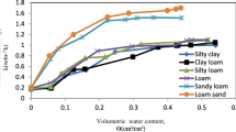 Figure 5 presents the comparison between the measured and calculated λ for the 8 typical soil samples. RMSE, PBIAS, and NSE of different models are listed in Table 2. The quartz contents of the 8 soils were not measured, so the measured λsat was used to estimate λ of the soils. Models of Campbell41, Tien et al.47, and Li et al.42 produced large deviations in the entire water content range. The Campbell (1985) model was able to provide more accurate calculations for silt loam and silt clay loam (Fig. 5g, h), but it was no longer suitable for other soils. The Campbell (1985) model underestimated the measured values for sand (Fig. 5a, b), loam (Fig. 5e), and sandy loam (Fig. 5f) under near-saturated conditions, while underestimated λ for sandy clay loam (Fig. 5c) and silty clay (Fig. 5d) in the entire water content range. For sand (Fig. 5a, soil 2), for example, the discrepancies of the Campbell (1985) model between measured and calculated λ values at θ = 0 is 0.1204 W/m °C, while it increased to 0.5763 W/m °C at θ = 20%. The Li et al. (2008) model, developed for loamy soil, underestimated λ for over the full texture ranges of soils. The Tien (2005) model generally overestimated λ at lower water contents and underestimated λ at higher water contents. In general, the Johansen (1975) model produced a good prediction of the thermal conductivity of the 8 soils, but there was a large error in predicting the thermal conductivity of dry soil. It overestimated the soil thermal conductivity of coarse sand and underestimated that of fine soils. For example, the measured values of dry soil thermal conductivity of soils 2, 12, and 39 are 0.21, 0.19, and 0.17 W/m °C, while the corresponding calculated values are 0.25, 0.21 and 0.20 W/m °C, respectively. The reason is that the Johansen's calculation formula of λdry has a close correlation with the dry bulk density of soil, while the dry bulk density of coarse sand is higher and the dry bulk density of fine soils are generally lower. This model also didn’t predict soil thermal conductivity well when the saturation is in the range of 0–5%. Compared with the Johansen (1975) model, the Lu et al. (2007) model produced a higher accuracy in predicting the thermal conductivity of fine-textured soils, but it was not as good as the Johansen (1975) model in predicting the thermal conductivity of coarse sand. In addition, the Lu et al. (2007) model obviously overestimates the soil thermal conductivity when soil saturation is in the range of 0.2–0.6. Those phenomena were not obvious in the new model. Therefore, we conclude that the new model, which provides the lower RMSE (0.04–0.06), PBIAS (-0.04–0.04), and the higher NSE (0.98–0.99), performs better than other models for all the tested soils. As shown in Table 2, the new model has the best performance on sand and the RMSE, PBIAS and NSE are 0.04 W/m °C, − 0.03 and 0.99, respectively. Although we did not obtain the exact quartz content, actual λ and quartz content measurements were listed in the paper57. Figure 5e–h show that the accuracy of the proposed model can be high.