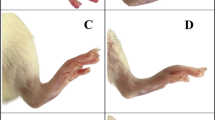 The concentrations of TNF-α, IL-10, and IL-1β in serum and knee joint tissue extract were determined with ELISA kits. On the 15th day after the CFA injection, animals were anesthetized with sodium pentobarbital (50 mg/kg, IP). Blood was collected and stored at 4 °C for 30 min and then centrifuged at 15,000 rpm for 10 min in a refrigerated centrifuge (Eppendorf-5430R). Subsequently, knee joint tissues, including bone, were collected in 10% PBS, homogenized, and centrifuged at 15,000 rpm for 10 min. The supernatants were collected, treated with a protease inhibitor cocktail (Sigma) and stored at – 20 °C until further Use. The levels of TNF-α, IL-10 and IL-1β, were determined using commercially available enzyme immunoassay kits (Invitrogen, USA). The measurement was completed using an ELISA reader at 450 nm (SpectraMax® MM5e Plus, Molecular Devices, USA).