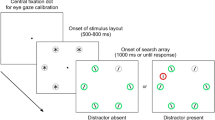 Context plays a major role in many theories of learning and memory30, and for good reason as the advantages of context sensitivity are large. Without some form of context sensitive learning, selection history effects would require a constant re-learning of biases for contexts that have been encountered before, and perhaps more catastrophically, inadequate biases would persist even when they are no longer relevant. Indeed, many of the empirical findings align with the advantages of context dependency. In visual search, contextual cueing and reward learning have been shown to involve context-dependent learning31,32,33,34,35. For example, stimulus features that have been rewarded in a particular context, later only captured attention when presented in the same context (e.g., same background scene31). In contextual cueing, hyper specificity was reported, with no transfer at all between contexts that only differed in color35. Furthermore, if background images are associated with search displays that require either feature search (searching for a specific combination of features) or singleton search (searching for a deviation from the rest) in a training phase, those backgrounds reinstate the associated search strategy in a testing phase36,37. Context-dependent distractor effects have also been observed in habituation-based studies38,39. After repeated exposure, attentional capture for the distractor habituated (decreased), but returned in full a day later when the background was changed, while it remained habituated when the background was kept the same39. However, habituation in these experiments was not location-specific.