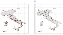Next, we discuss the results of evaluating the ability to predict habitat where the mapped predictions were quantitatively and visually assessed. The AUC is considered the best evaluation of predictive power and has been extensively used in SDMs37, 43. AUC indicated that the two models were able to perform acceptable prediction (AUC ≥ 0.75) for all species distributions, but with little variation between AUC values. In other words, the AUC was higher in the RF model, indicating better performance in the RF model. Our result agrees well with those of other studies and confirmed the performance of RF rather than MaxEnt in terms of AUC index35,36,37. Our results do not explain why one model performs better than the other; however, possibly the superior predictive performance of a particular model may be due to methodological advances in machine learning, improved mathematical modeling techniques, and more powerful statistical tools43. Many other factors, such as sample size, spatial scale, selection of environmental variables, and selection method for pseudo/absence data can affect predictive performance44, 45. Therefore, methodological improvements may reduce potential problems in modeling and increase their accuracy.