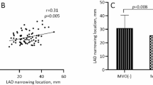 In univariable and multivariable logistic regression analyses, BSA, the history of DM, SYNTAX Score, LVMI, and lesion stenosis severity were independent predictors of the presence of UMI (OR 11.5, 95% CI 2.53–82.6, P = 0.005; OR 2.28, 95% CI 1.09–4.79, P = 0.030; OR 1.12, 95% CI 1.06–1.20, P < 0.001; OR 1.02, 95% CI 1.00–1.04, P = 0.026, OR 1.03, 95% CI 1.00–1.07, P = 0.039, respectively) (Table 2). Meanwhile, UMI in the target vessel territories and log (NT-proBNP) before the index PCI were independent predictors of the occurrence of PPL (OR 3.77, 95% CI 1.52–9.36, P = 0.004; OR 1.32, 95% CI 1.05–1.65, P = 0.016, respectively), whereas the presence of recognized myocardial infarction in the target area was not significant (OR 1.06, 95% CI 0.38–3.00, P = 0.91) (Table 3).