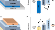 IV-related parameters of all fabricated cells were characterized by a class-A solar simulator with a xenon lamp. Based on this screening, selected cells were characterized in detail at the Fraunhofer ISE CalLab PV Cells. By means of a grating monochromator setup with adjustable bias voltage and bias spectrum, external quantum efficiencies were measured33. IV characteristics were determined at standard testing conditions (IEC 90604-3, ed. 2 with 1000 W m−2) under a spectrally adjustable solar simulator with one xenon lamp and two halogen lamp fields34. They were adjusted in intensity independently of each other to generate the same current densities in each sub-cell as under illumination with the AM1.5 g spectrum. An aperture mask was used for these measurements with an open area of 3.987 cm2. The solar cell results thus refer to aperture area measurement including shading by fingers, busbars, or pads. More details about the measurement setup and procedure can be found in literature7.