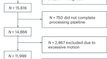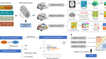 All functional images were spatially normalised into the standard MNI space (Montreal Neurological Institute, Montreal, Canada), outliers were detected (ART-based scrubbing), and the images were smoothed using a Gaussian kernel with a full-width-at-half maximum of 8 mm using the customized CONN toolbox preprocessing pipeline. All preprocessing steps were conducted exclusively using a default preprocessing pipeline for volume-based analysis (to MNI space). Structural data were segmented into grey matter, white matter, and cerebrospinal fluid and normalised in the same default preprocessing pipeline. Principal components of signals from white matter and cerebrospinal fluid, as well as translational and rotational movement parameters (with another six parameters representing their first-order temporal derivatives) derived by realignment with FLIRT, were removed with covariate regression analysis using CONN. Using its implemented CompCor strategy32, the effects of nuisance covariates, including fluctuations in fMRI signals from white matter, cerebrospinal fluid, and their derivatives, as well as realignment parameter noise, were reduced. As recommended, band-pass filtering was performed with a frequency window of 0.008–0.09 Hz. This preprocessing step was found to increase retest reliability. We did not remove mean evoked responses prior to task-state FC analysis59.