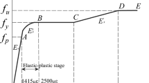 where fyd represents the dynamic yield strength of the steel at the strain rate \(\dot{\varepsilon }\), fys represents the static yield strength of the steel, and α = 0.074 – 0.040fy / 414.