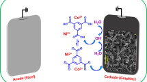 The electroplating or cathodic electrodeposition method was employed to coat the surfaces of carbon felt and graphite electrodes with a nickel metallic thin film. Initially, the CF and GP electrodes were pretreated by soaking in acetone solution for 20 min, boiling in 0.1 M HCl for 15 min, and then washing with water to remove any oils and foreign particles from their surfaces39. The electroplating process was carried out in an undivided homemade reactor consisting of a metallic nickel plate as the anode, graphite plate and carbon felt as the cathode, and nickel sulfate (NiSO4·6H2O) as the supporting electrolyte in an aqueous solution of boric acid (H3BO3) at room temperature (Table 1). By applying a suitable current density for a specific period of time, the metallic anode begins to oxidize and releases the desired metallic cations (Ni2+) into the solution. Simultaneously, the dissolved metallic cations undergo cathodic electrodeposition onto the graphite plate and carbon felt electrodes. Finally, the nickel-coated graphite plate and carbon-felt electrodes are removed from the solution and rinsed with water (Figs. 1 and 2).