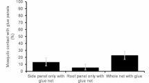 In all tests, rectangular bednets measuring 1.9 m × 0.8 m × ~ 1.0 m tall were used as the standard bednet. Treated nets were Permanet 3.0 (Side walls of 75 denier polyester, deltamethrin 2.1 g/kg ± 25%; roof of 100 denier polyethylene, deltamethrin 4.0 g/kg ± 25% and PBO 25 g/kg ± 25%; Vestergaard, Lausanne). Barriers comprised sections cut to size from the roof of a Permanet 3.0. Untreated polyester nets were used as untreated controls, and matched Permanet 3.0 nets as closely as possible fiber thickness and hole size. Before being used in experiments, untreated nets were first tested by WHO cone test to confirm the absence of any insecticidal effect, and all nets were hung for 4 weeks before use to allow evaporation of any potentially repellent or attractant volatile odors.