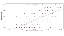 We found no relationship between sleep quality as measured by the PSQI and cutaneous manifestations of psoriasis as measured by the PASI (r: 0.12; p = 0.54). On the other hand, we observed a weak correlation between PSQI score and item 3 of the PsAID, concerning skin problems including itchiness (r: 0.39; p < 0.001) (Table 4).
